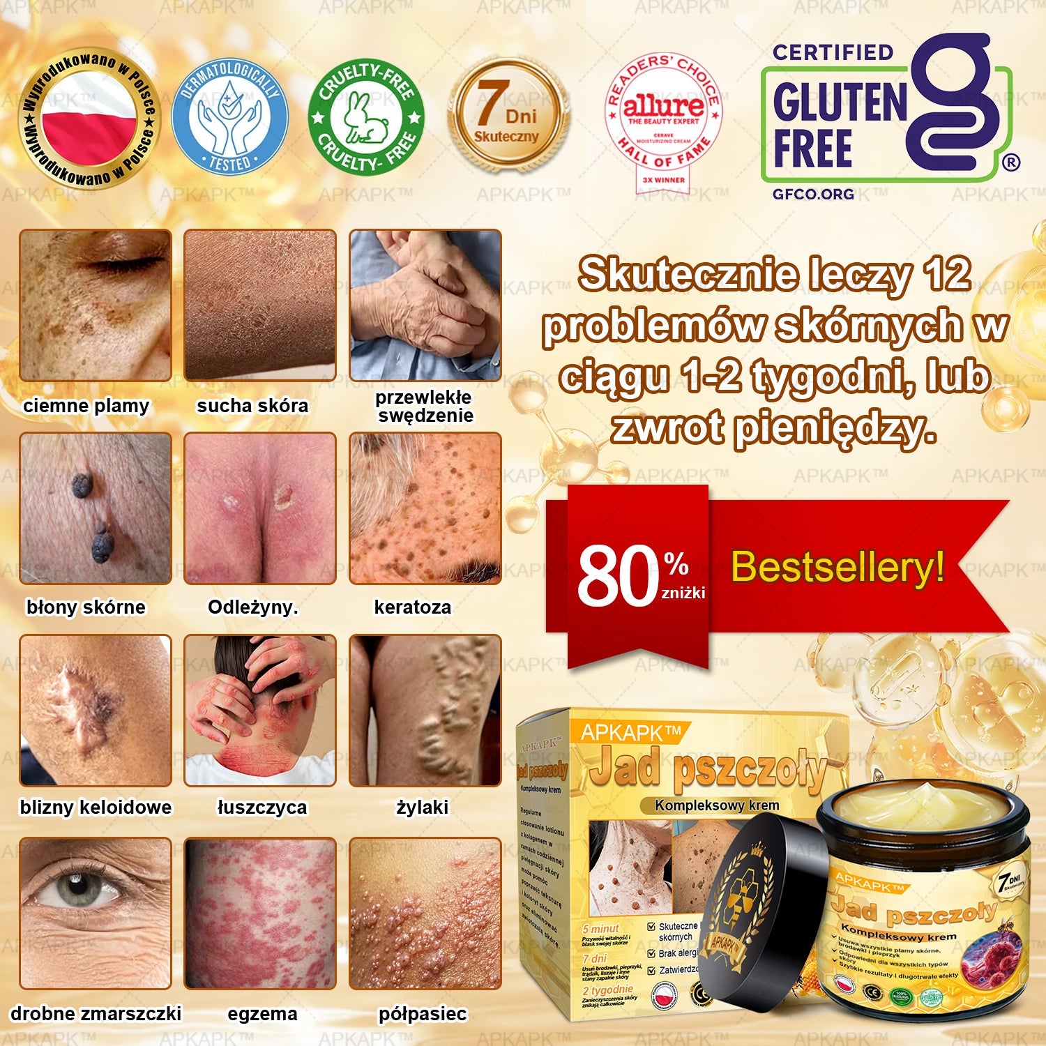 ΑPΚΑPK™ Jad Pszczoły Kompleksowy Krem🥇🥇🥇pomaga w leczeniu problemów skórnych, takich jak: zmarszczki, blizny, plamy pigmentacyjne, rozstępy, trądzik, łuszczyca, egzema, zmiany skórne, podrażnienia, stany zapalne i inne problemy skórne🔥